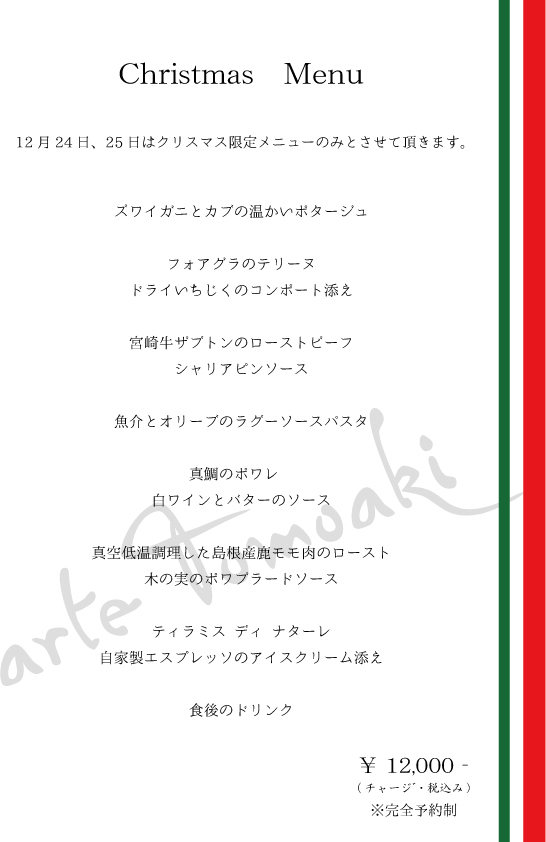※12月24日、25日はクリスマス限定メニューのみとさせて頂きます