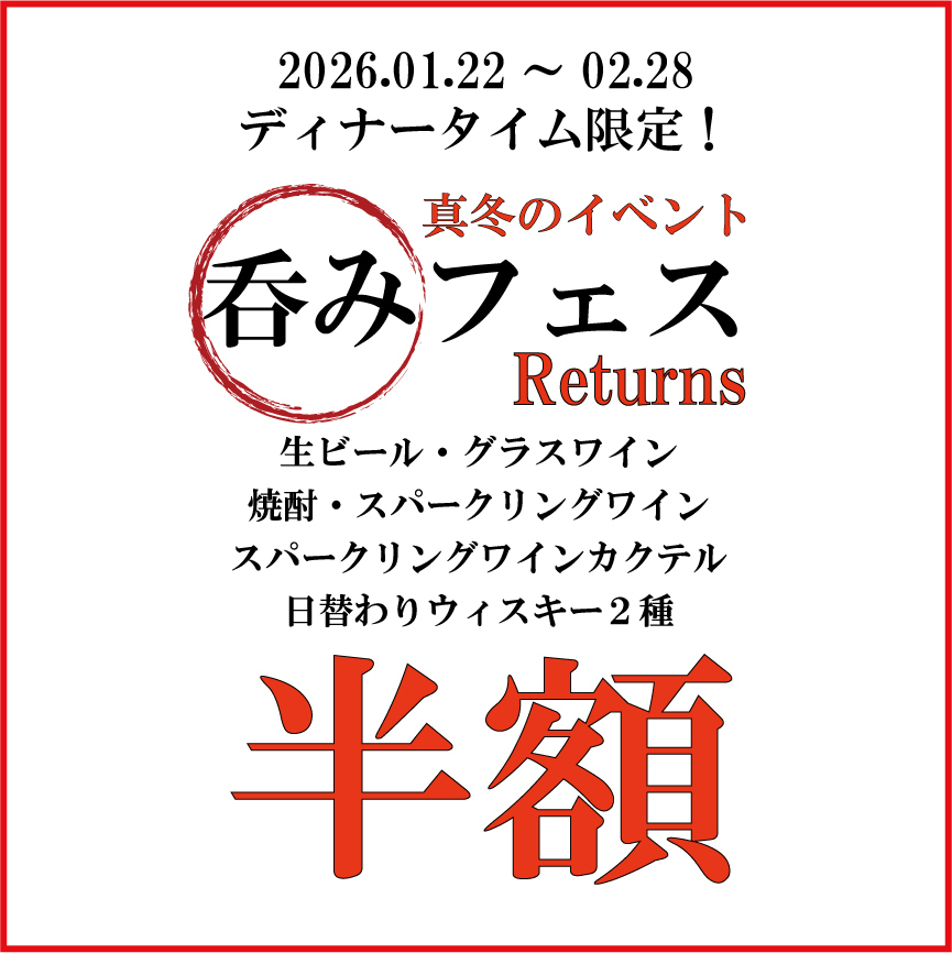 1月22日〜2月28日まで、焼酎・ハウスワイン・